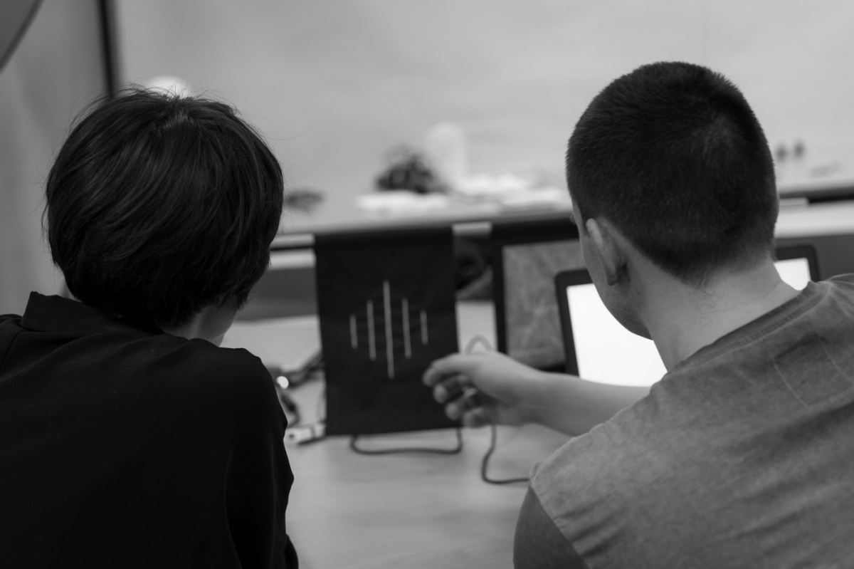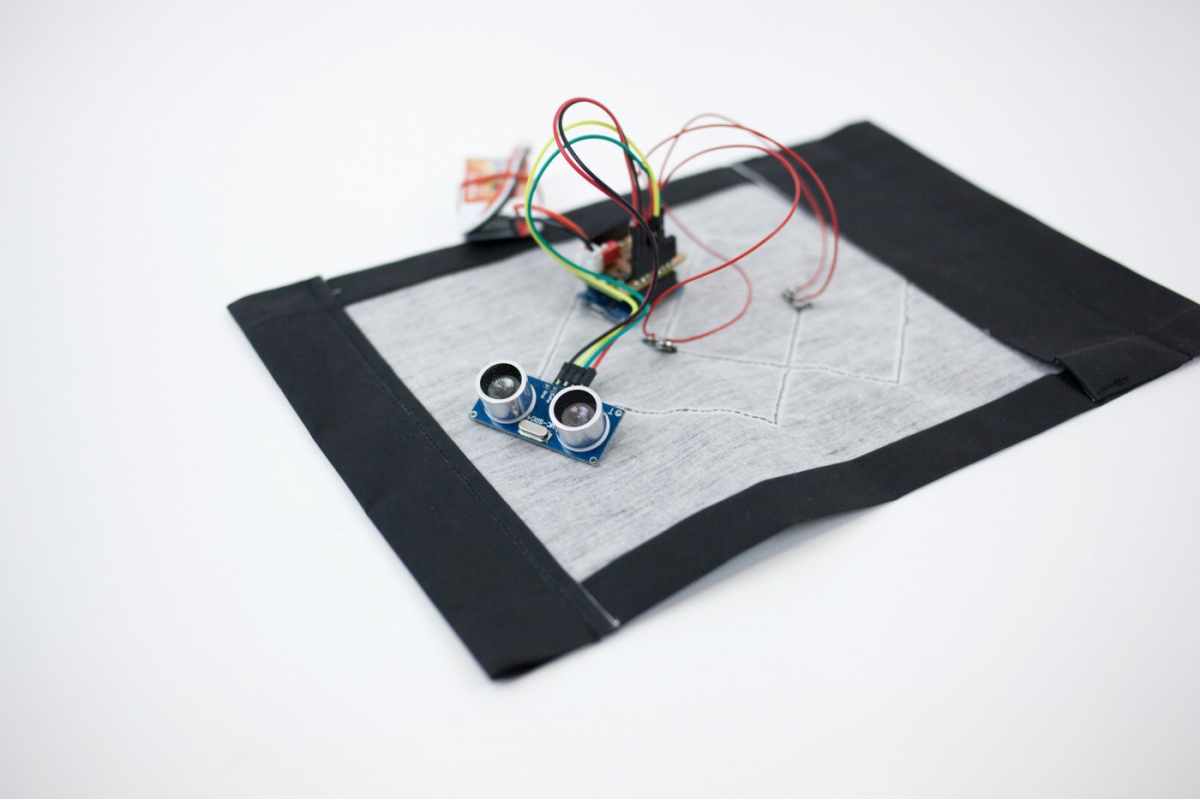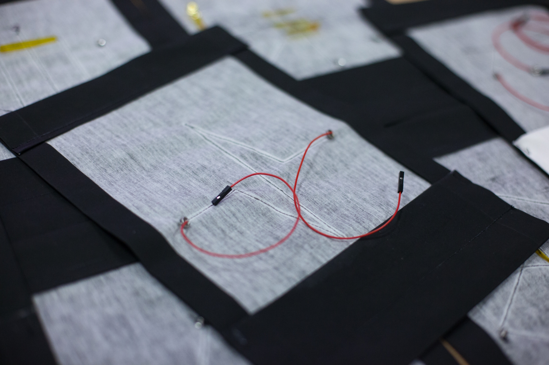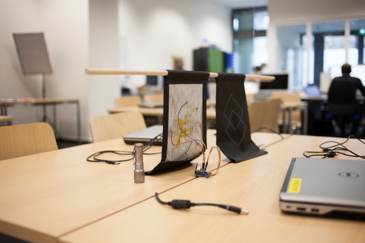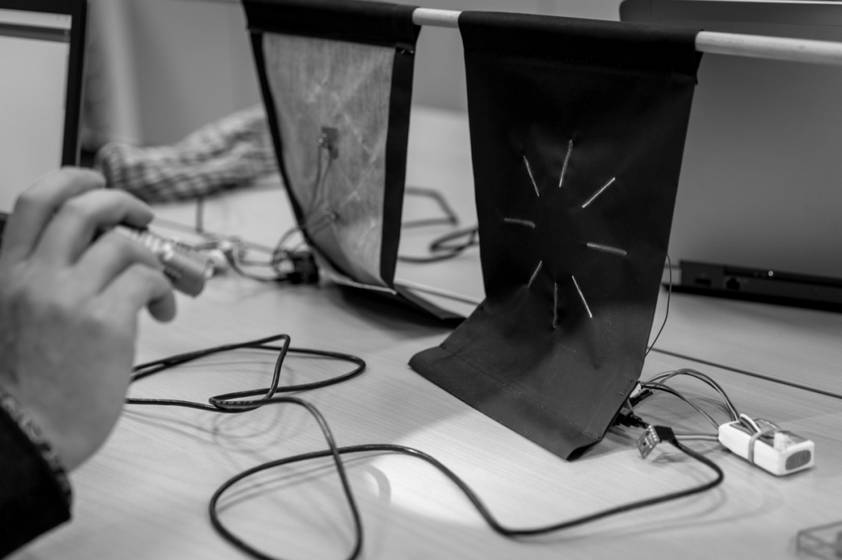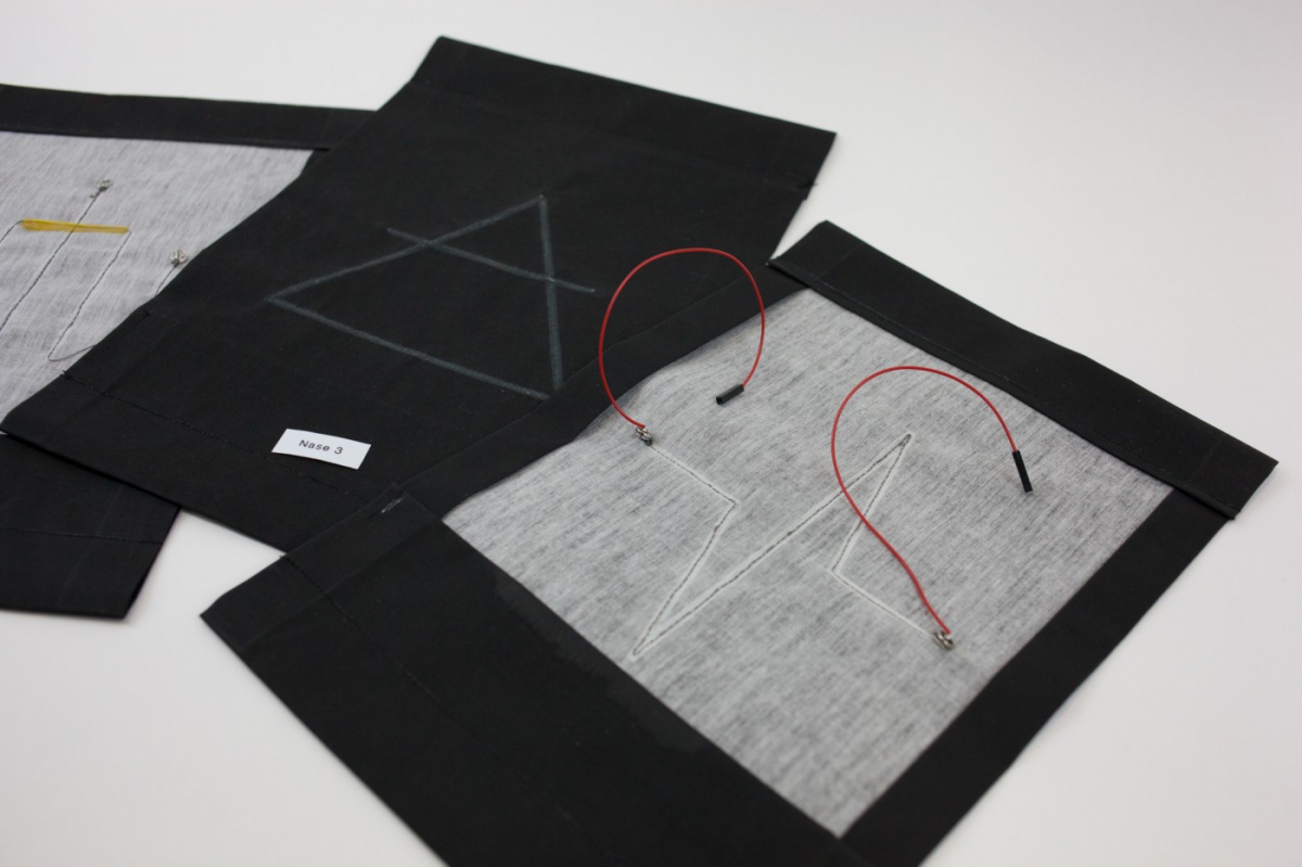 Thermochromic textiles to provide a user feedback through the use of different sensors. The workshop was part of the Gesellschaft für Informatik's DevCamp at HAW Hamburg.