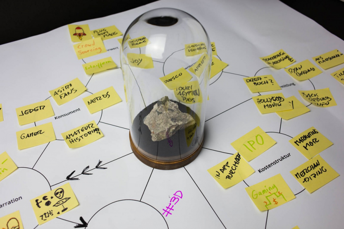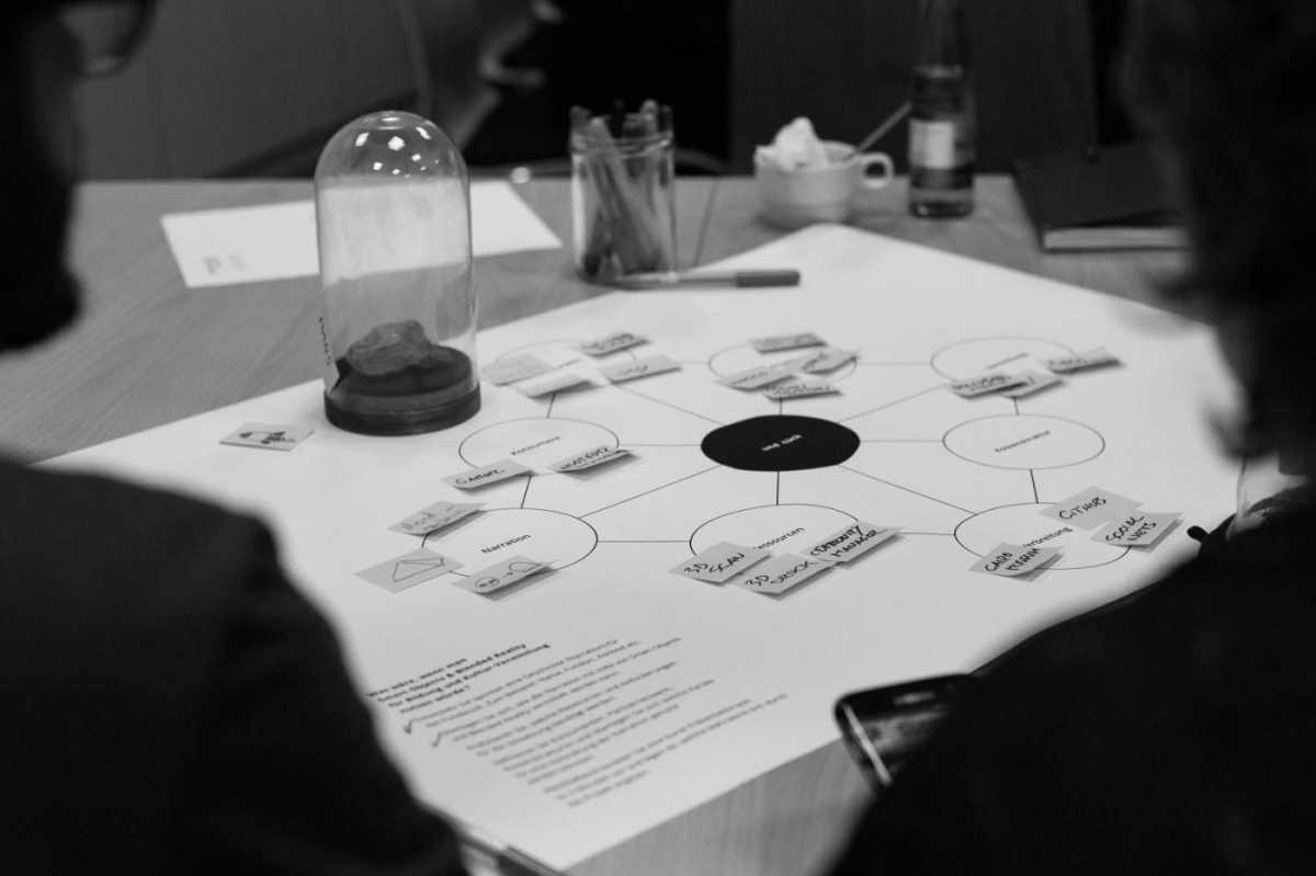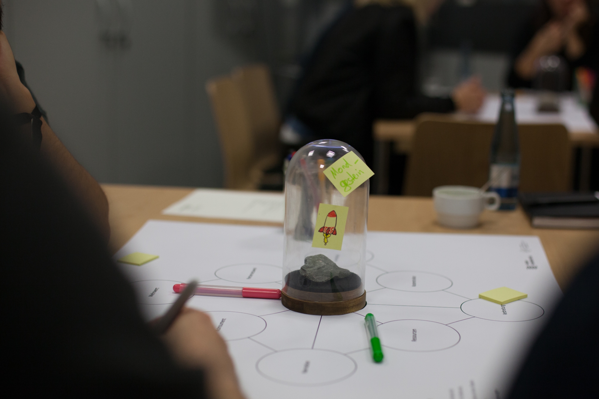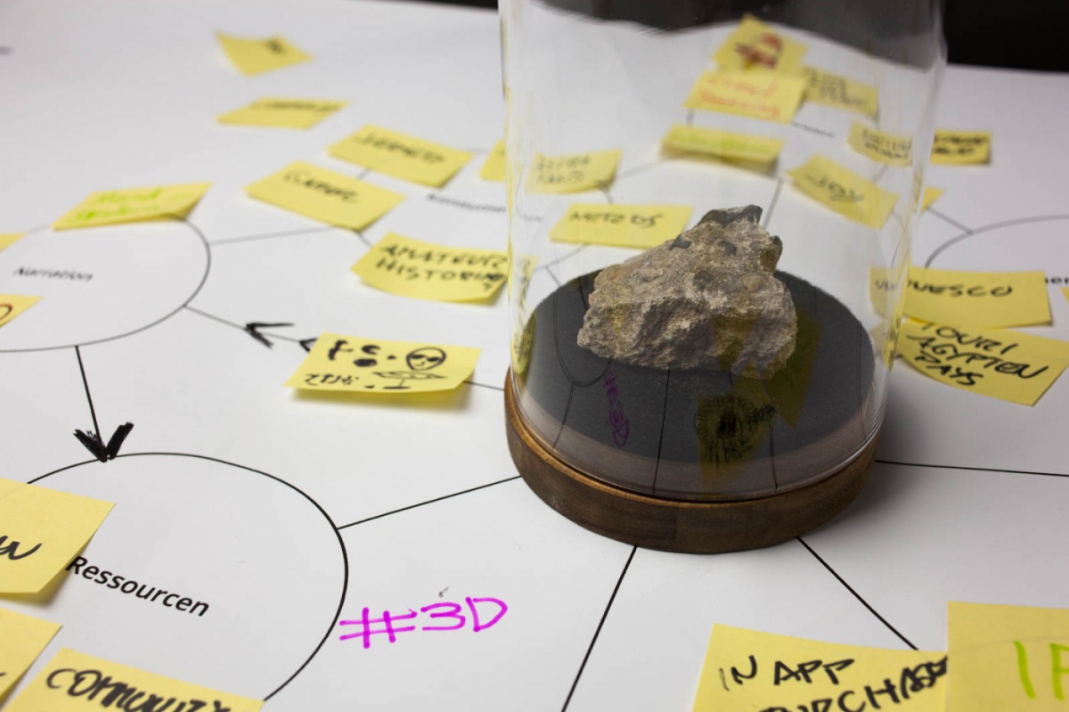 For the participatory design workshop “Smart Objects and Blended Realities”, Broscheit developed the Fiction Board as a methodological tool with the aim to empower participants from cultural institutions, sciences, and small-sized enterprises to envision concepts for digital culture in urban spaces. After an introduction with examples of digital art, the interdisciplinary participants used the Fiction Board to create digital concepts around a speculative, archaeological artifact (a stone). The workshop was part of the eCulture Innovation Forum funded by the Federal Ministry of Education and Research.